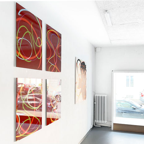Die Schau im Material, dem Raum für Buchkultur, vereint neue Zeichnungen auf Acrylglas die 2025 entstanden.